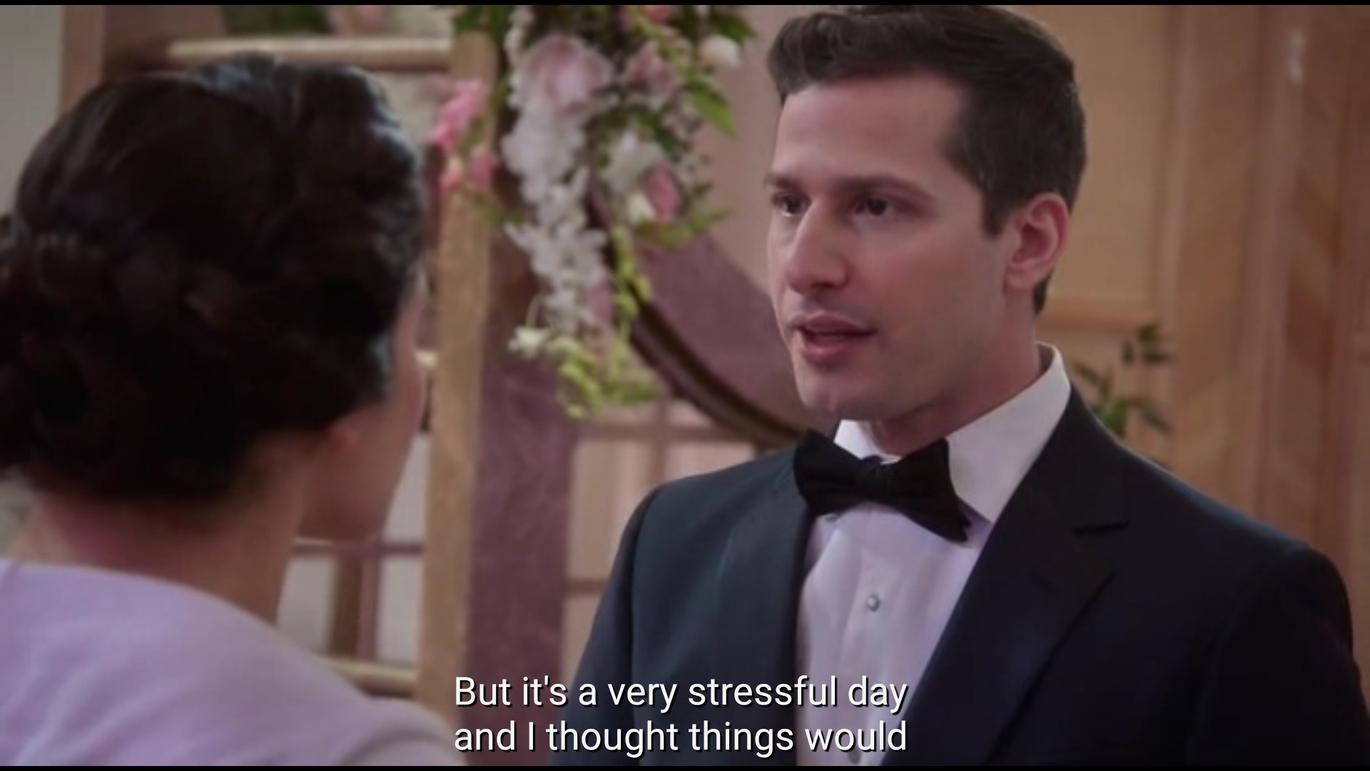 완벽하게 흘러가지 않을 것 같은 결혼식에 에이미는 엄청나게 긴장을 하고, 제이크가 에이미를 그만의 방식으로 센스 있게 위로하는 장면인데요. 한번 내용을 보실까요?