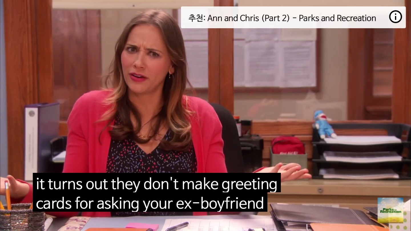 제 최애 드라마! 바로 팍스앤레크리에이션인데요. 유튜브에 공식 채널이 있어서 올라오는 영상을 복습하고 있어요!(종영한지 몇년이 지났는데 댓글창에 남아있는 고인물들..)