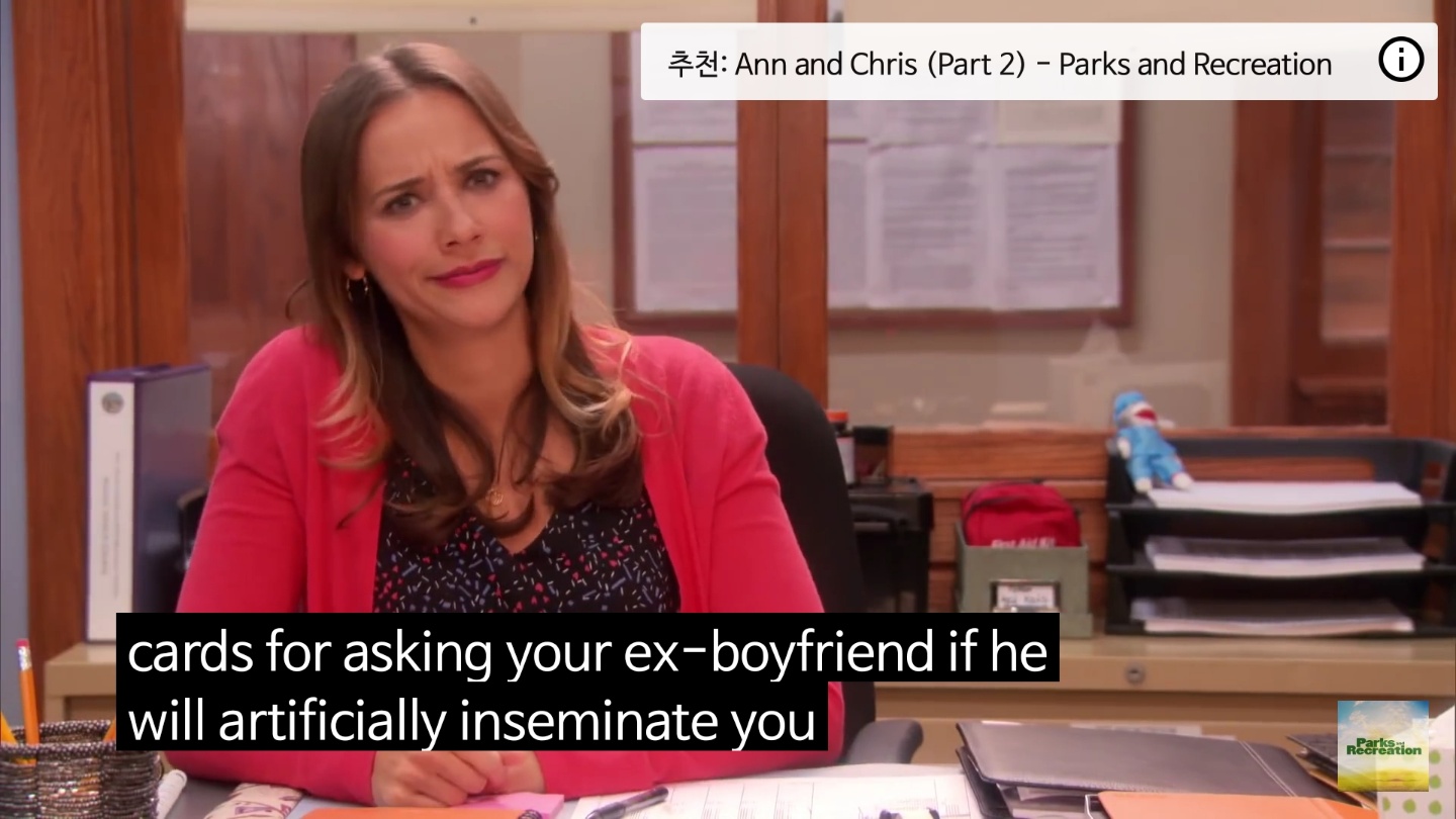 앤: 전 남자친구에게 나한테 인공수정을 해줄 수 있냐고 물어보는 카드는 안 만드는거 있죠?