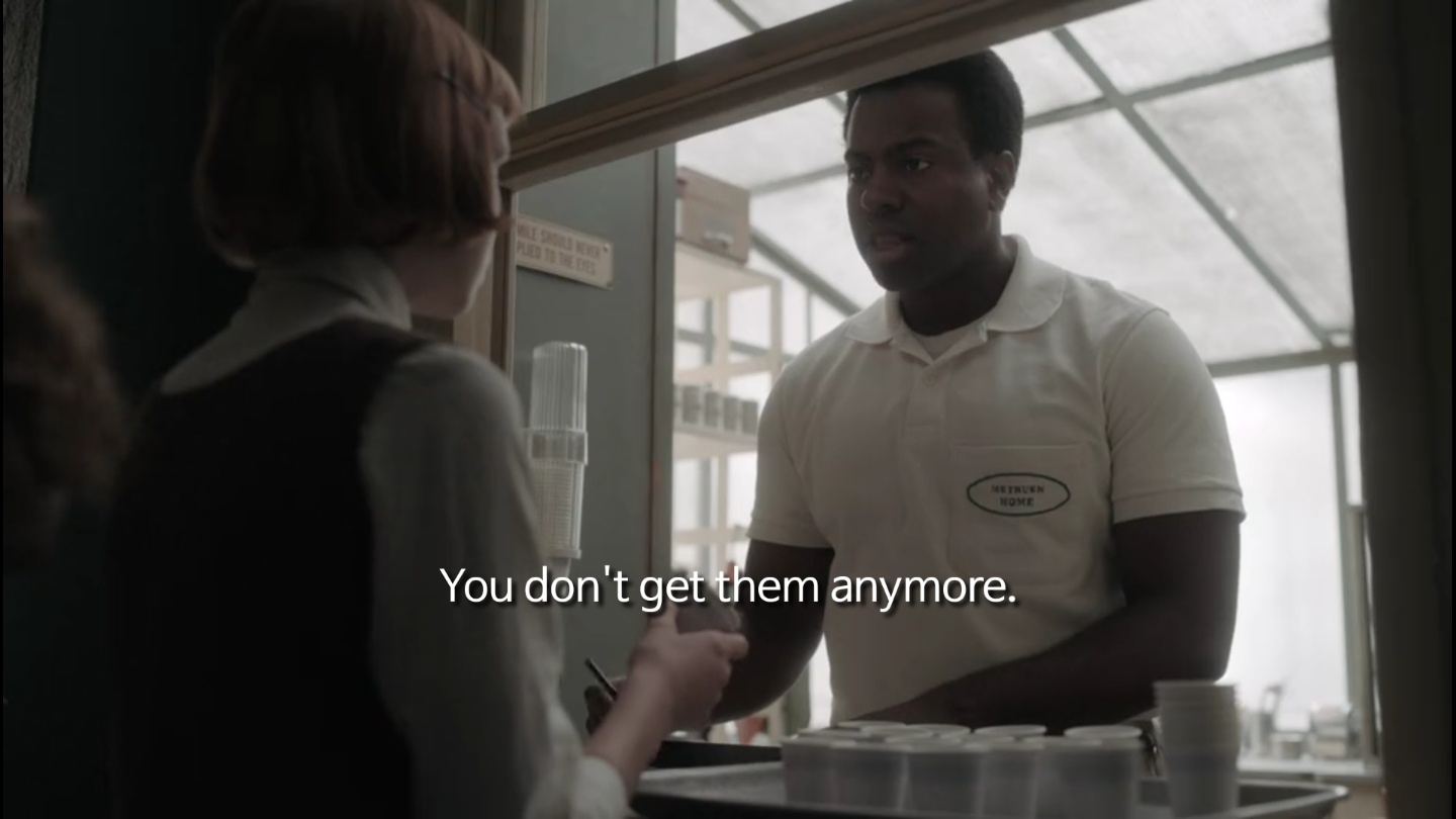 에피소드 1에서 주인공 베스(Beth)는 고아원에서 아이들을 통제하기 위해 매일 나눠주는 안정제(tranquilizer)에 중독이 되고 맙니다.