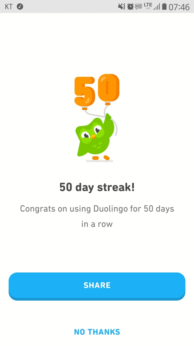 그 이후에 꾸준히 듀오링고를 해왔답니다.