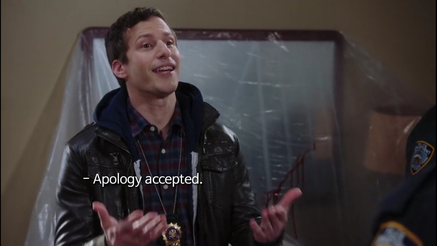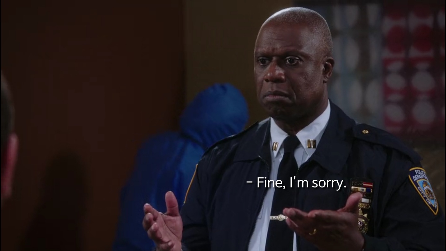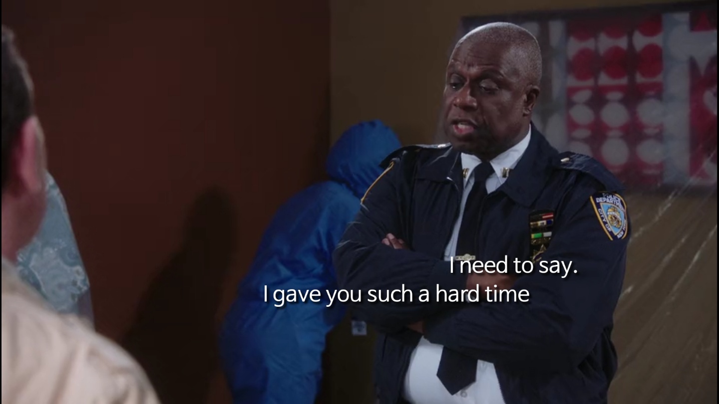 시즌 6 17화 에서 캡틴 홀트가 제이크에게 사과하는 장면이 있는데요! 대화를 한 번 보실까요?