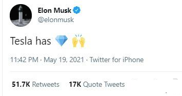 얼마 전에 일론 머스크가 올린 트위터는 "Tesla has DIAMOND HANDS"가 화제가 되었는데요.