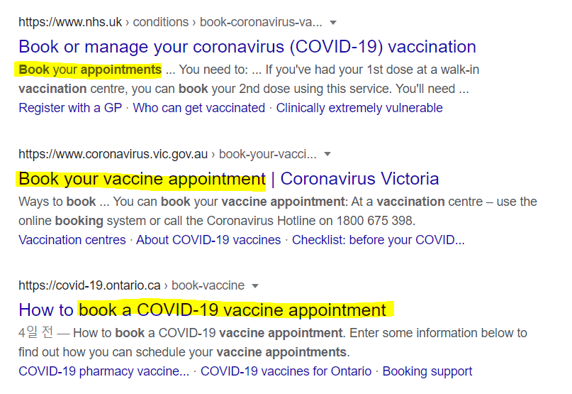 구글링을 해보니 appointment를 사용해서 백신 예약을 표현하는 것을 확인할 수 있었는데요, appointment는 '약속'이라는 뜻을 갖고 있죠?