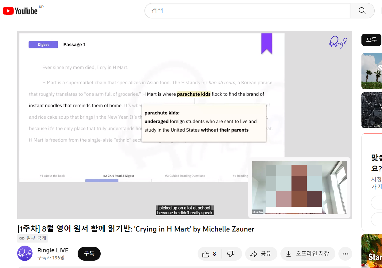 8월 '링글 영어 원서 함께 읽기반' H마트에서 울다(Crying in H Mart) 후기! 본문