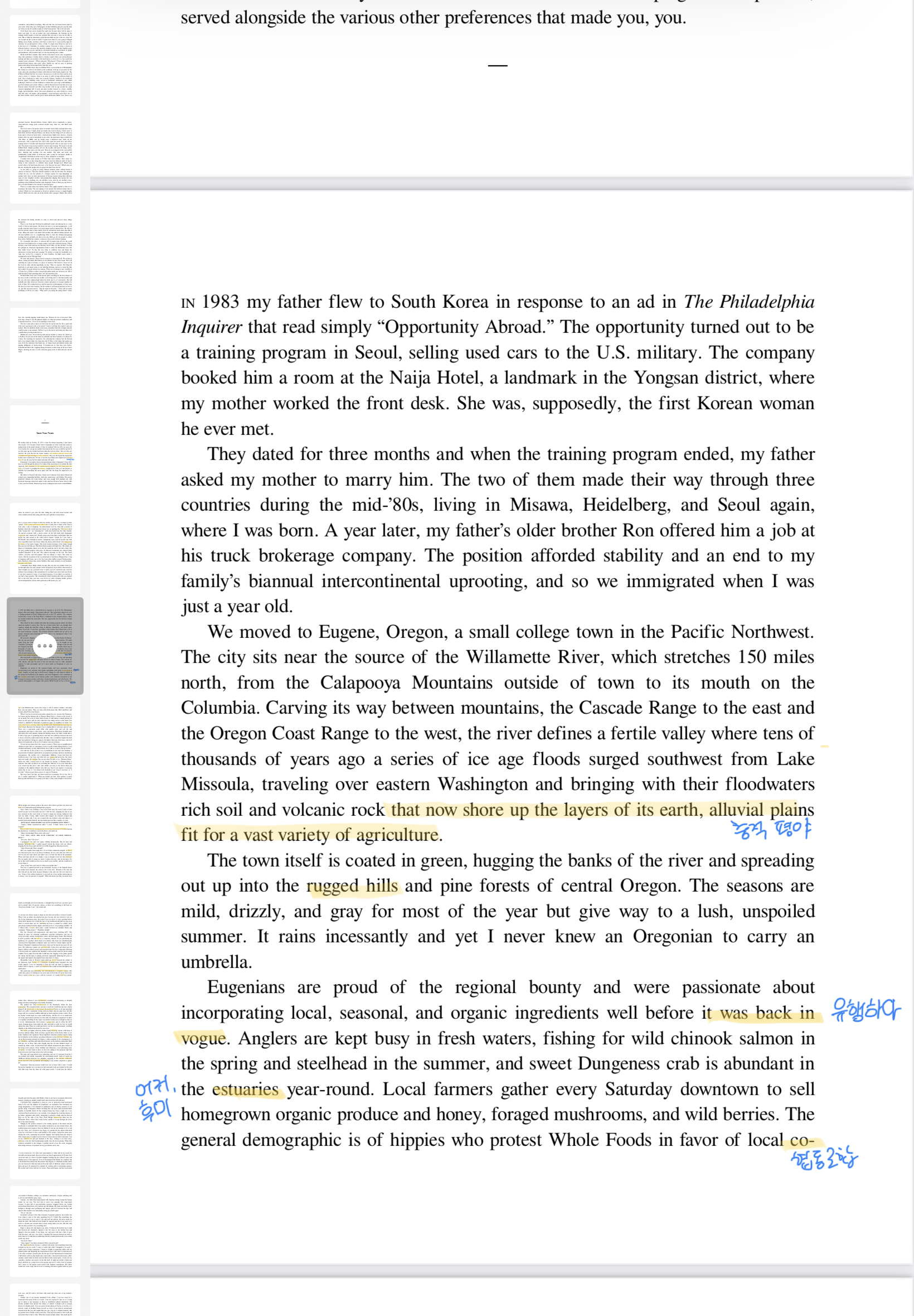 책에 대해서는, 일단 Crying in H Mart라는 책 자체가 뉴욕타임즈 베스트셀러인만큼 퀄리티가 보장된 책이기도 하고, 한국계 미국인인 저자가 쓴 책이라 한국 문화에 대한 설명이 많이 있어서 이해하는 데 크게 어렵지 않았습니다.